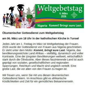 Weltgebetstag der Frauen am 08 März um 18 Uhr in Tunsel