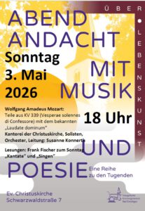 Seit Beginn des russischen Angriffskrieges gegen die Ukraine vor genau vier Jahren hat sich eine kleine Gruppe regelmäßig in der Christuskirche getroffen, um vor Gott zu klagen, der Notleidenden zu gedenken, sie ins Gebet einzuschließen und um Frieden zu beten. Jedesmal wurde für die DiakonieKatastrophenhilfe gesammelt, die überlebenswichtige Nothilfe in der Ukraine leistet. So kamen bisher 3716 Euro zusammen! Zudem konnten durch Kollekten bei anderen v.a. gottesdienstlichen Gelegenheiten während dieser vier Jahre weitere 3378 Euro an das Hilfswerk weitergeleitet werden. Ein herzliches Dankeschön allen, die dazu beigetragen haben, auf diesem Wege die Not unserer Menschengeschwister zu lindern.