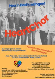 Wöchentlich probt die Kantorei im Gemeindesaal zwischen 19.30 und 21.30 Uhr. Abweichungen vom Probetermin am Mittwoch erfahren Sie über Bezirkskantorin Susanne Konnerth.