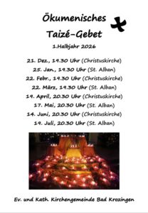 Die nächsten Taizé-Gebete finden statt: